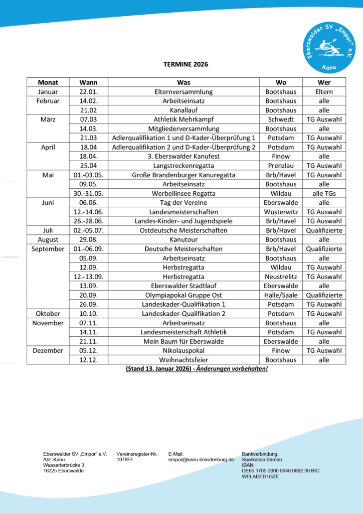 Hier findet ihr alle Termine für das Jahr 2026